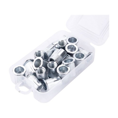 szegecsanya klt. 20 db, M10, POP-NUT, horganyzott acél, kerek, nyitott, lapos peremű, rovátkolt FORTUM
