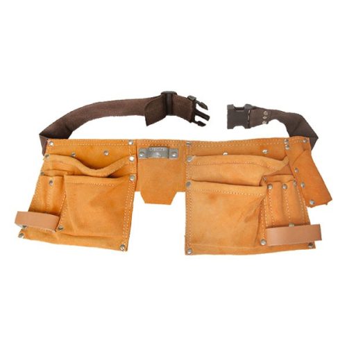 szerszámtartó öv, 6 zsebes, hasított bőr; műanyag csattal