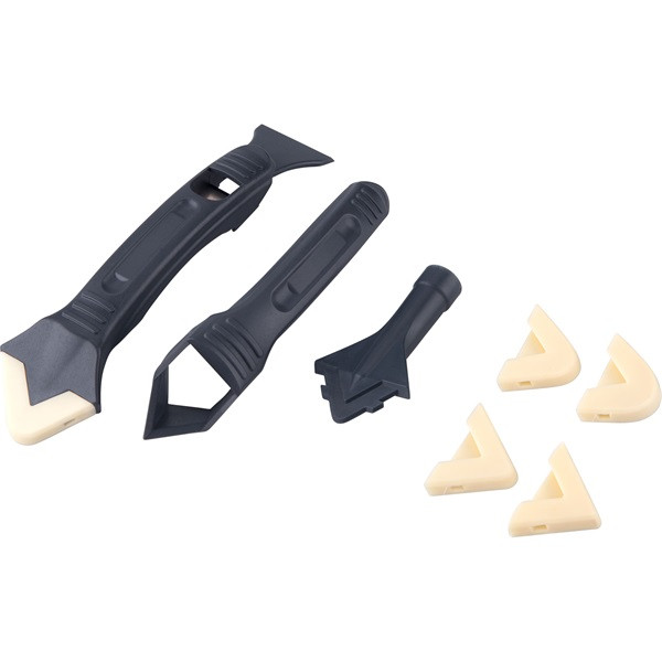 3 db ABS műanyag szerszám: fugalehúzó- és kaparó, fuga eltávolító, kenőfej+ 5 db szilikon lehúzóprofil R=3-6-10-13-17 mm