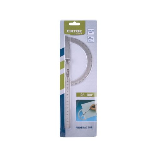 szögmérő/vonalzó, lakatos, hossz.: 278 mm, Inox, mm beosztás, 0° -180°, vastagság: 1,3 mm