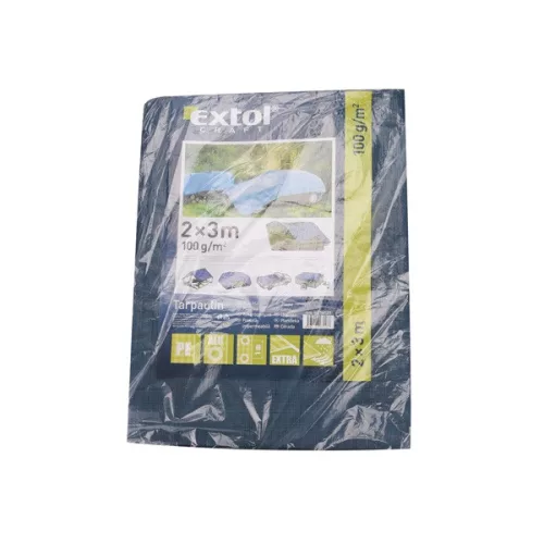 takaróponyva, vízálló, de nem UV álló; 100g/nm, 2×3m névleges méret, valós méret: 1,9×2,85m, PE, lefűző lyukak