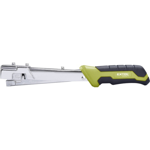 A tűzőkalapács.teljes mértékben fémből készült, jó ellenálló képességű szerkezet. ergonómikus kialakítású gumibetétes markolat a kapcsok hosszabb időn keresztül egy kézzel történő könnyű belövéséhez. A tűzőkalapács csak a hagyományos téglalap alakú, 6-10 mm-es kapcsokhoz használható, de mind a 10,6 és a 11,3 mm-es nyomtávban. Nagy kapacitású tár, a hosszú ideig tartó folyamatos, utántöltés nélküli munkavégzés érdekében; a kapcsok cseréje gyorsan elvégezhető.