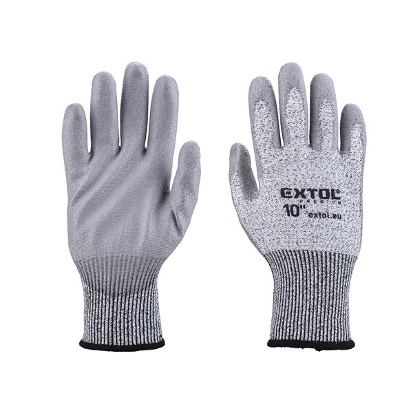 Munkavédelmi kesztyű magas vágásállósággal, poliuretánba mártott tenyér és újhegy, valamint rugalmas kötött mandzsettával.