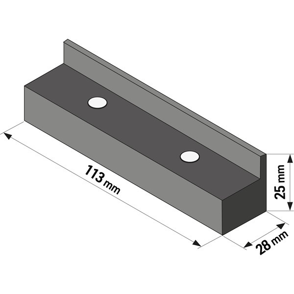 Érzékeny munkadarabok sérülésmentes befogásához. TPU (termoplasztikus műanyag), mágneses rögzítés. Méretek: 113×28×25mm.
