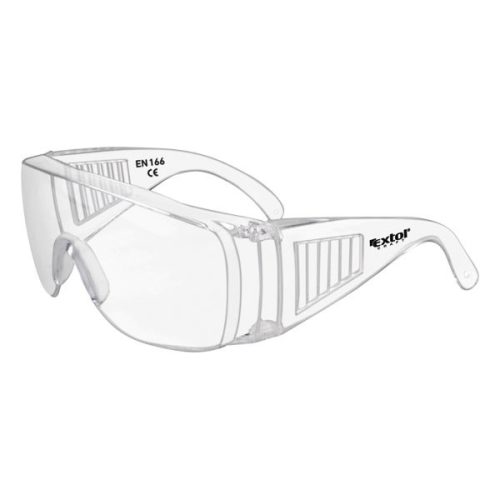 Univerzális méretű, teljesen átlátszó, polikarbonát anyagú, S osztályú panoráma nézőüveggel rendelkező, dioptriás szemüveg előtt is használható védőszemüveg. A CE jelöléssel rendelkező védőszemüveg teljesíti az EN 166 számú szabvány előírásait (az EN 166 számú szabvány értelmében az S osztályú védőszemüvegeknek védelmet kell nyújtaniuk 22 mm átmérőjű, 43 g tömegű, 5,1 m/s sebességgel mozgó acélgolyók nekiütődésekor). A szemüveg a szem levegőben szálló tárgyakkal szembeni védelmére szolgál.