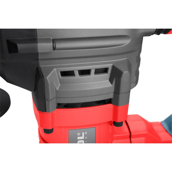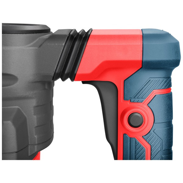 Az SDS MAX 15J ütési energiájú vésőkalapács egy nagy teljesítményű gép, amelyet építési és bontási munkákhoz terveztek. Főleg ott használják, ahol a hagyományos fúrókalapács nem elég – beton, kő vagy tégla bontásához. A 15J teljesítményű vésőkalapács ideális kompromisszumot jelent az erő és a kezelhetőség között. Ez az ütési energia lehetővé teszi vastag betonrétegek feltörését, ugyanakkor a szerszámmal precízebb munkavégzés is lehetséges csempe, vakolat vagy ragasztott felületek lecsapásakor. Lapos vagy hegyes vésővel kombinálva beton alapok, falak, lépcsők vagy padlók bontásához használható. A szélesebb vésővel hatékonyan eltávolíthatók a régi burkolatok vagy aszfaltrétegek. A gép konstrukciója úgy van kialakítva, hogy biztosítsa a maximális ütési energia átvitelét a szerszámba. Az antivibrációs rendszer minimalizálja a felhasználóra átvitt rezgéseket, ami növeli a munkavégzés kényelmét és védi a kezelő egészségét. Ennek köszönhetően a felhasználó hosszabb ideig dolgozhat jelentős fáradtság nélkül. A markolat csúszásgátló anyaggal van bevonva és úgy van kialakítva, hogy hosszabb munkavégzés során is biztos fogást biztosítson, ami szintén hozzájárul a kényelem, a biztos fogás és a rezgéscsillapítás növeléséhez. Az SDS MAX rendszert nagyobb fúrók és vésők használatához fejlesztették ki. A kisebb SDS Plus rendszerrel ellentétben, amelyet könnyebb kalapácsokhoz használnak, az SDS MAX nagyobb átmérőjű és robusztusabb felépítésű. Ez nagyobb ütési energiát tesz lehetővé, biztosítja a szerszám szilárdabb rögzítését és hosszú távú terhelés mellett is megőrzi a magas hatékonyságot. A szerszámszár átmérője 18 milliméter, ami növeli a hajlításnak és a mechanikai kopásnak való ellenállást. A kapcsoló folyamatos működéshez zárral van ellátva, ami megkönnyíti a nagyobb felületek vésését anélkül, hogy folyamatosan a kapcsolót kellene tartani. A 360°-ban elforgatható elülső fogantyú lehetővé teszi a fogantyú helyzetének a kalapács munkapozíciójához való igazítását.