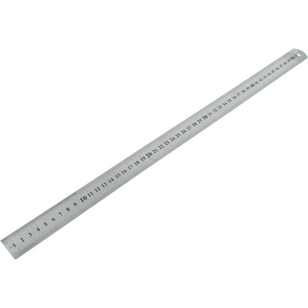 vonalzó, 100 × 3 cm, rozsdamentes acél; mindkét oldalán mm-es beosztás