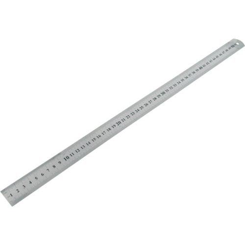 vonalzó, 50 × 3 cm, rozsdamentes acél; mindkét oldalán mm-es beosztás